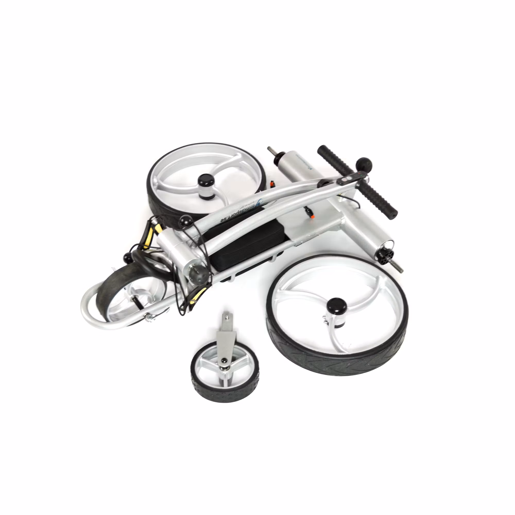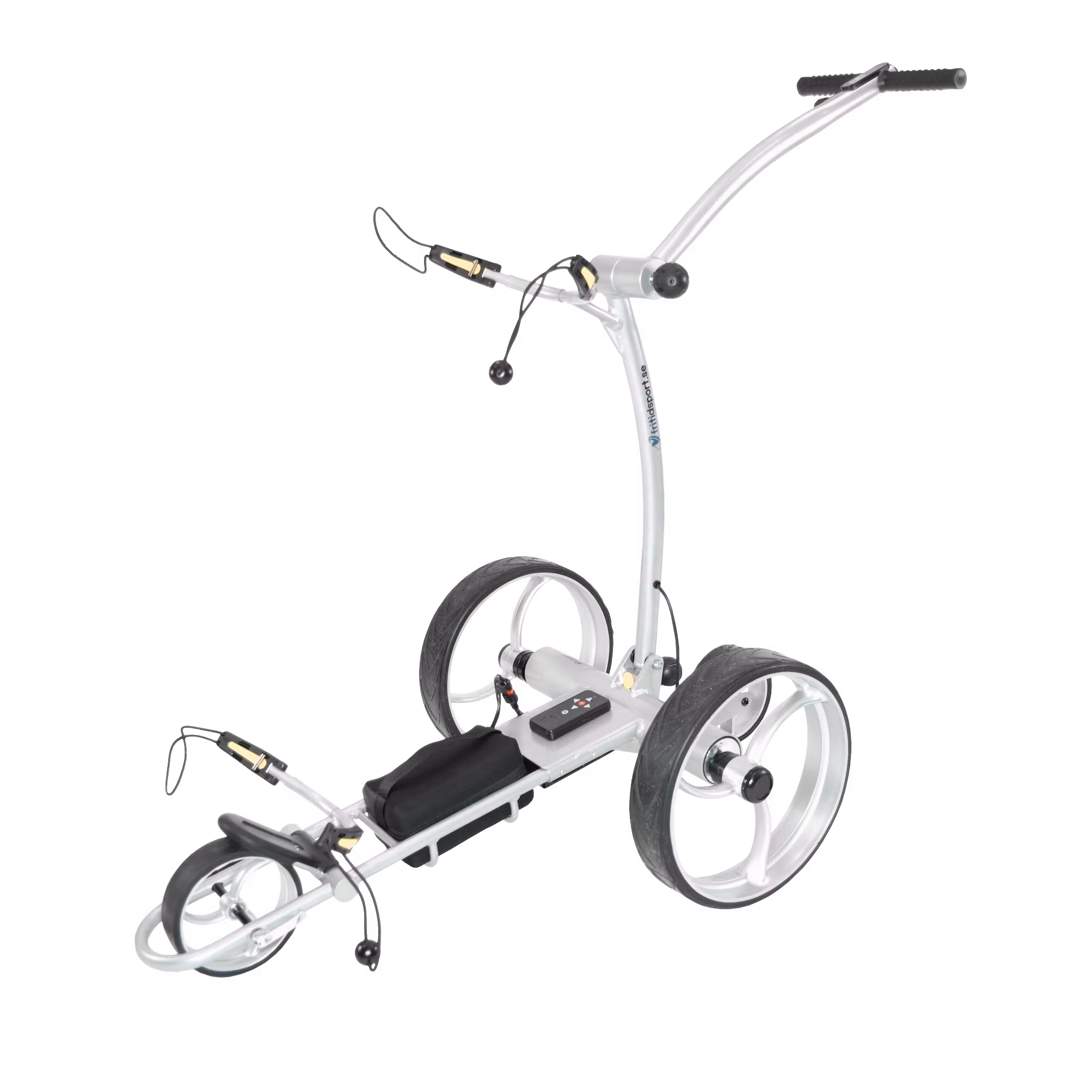 H&F X4R är en mycket välutrustad elektrisk golfvagn, full med extra finesser. Golfvagnen fälls snabbt och enkelt ihop med två snabbkopplingar. Vill man att den ska bli ännu mindre kan man även ta av hjulen, som också tas loss med en clip-on koppling.