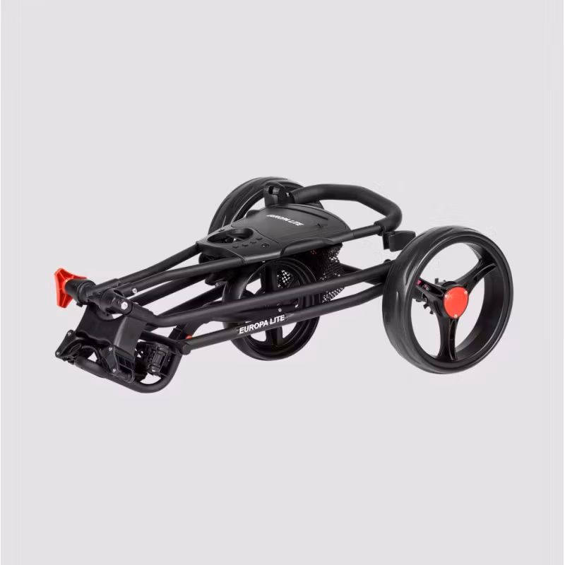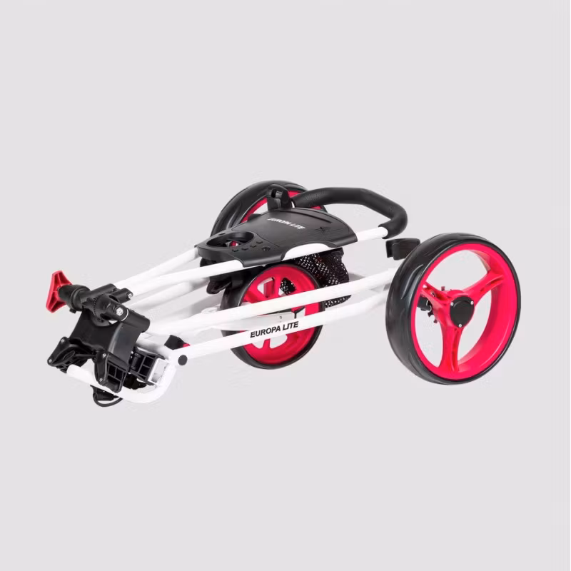 Europa Lite är en stabil och tålig manuell golfvagn. En rak axel mellan bakhjulen tillsammans med en "bredbent" hals gör att vagnen känns otroligt stabil att köra. Fotbroms och scorekorthållare ingår. Bagen säkras på golfvagnen med bungee-remmar.